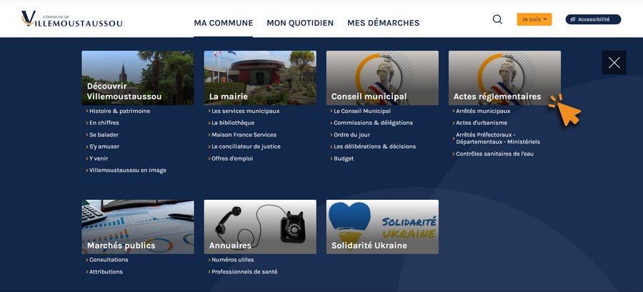 Vous pourrez retrouver notamment, les arrêtés municipaux ou les actes d’urbanisme dans la rubrique « Ma commune – Actes règlementaires ».