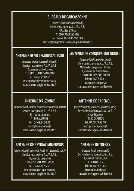 Pour inscrire votre enfant, vous pouvez effectuer votre réservation directement en ligne via le Portail Famille à l’adresse suivante https://portalssl.agoraplus.fr/carcassonne/pck_home.home_view# ou contactez l’antenne de Villemoustaussou au 04.68.25.02.66 (le mardi, mercredi et jeudi de 9h00 à 12h00 et de 13h30 à 17h00), les personnes ayant pris rendez-vous seront prioritaires.