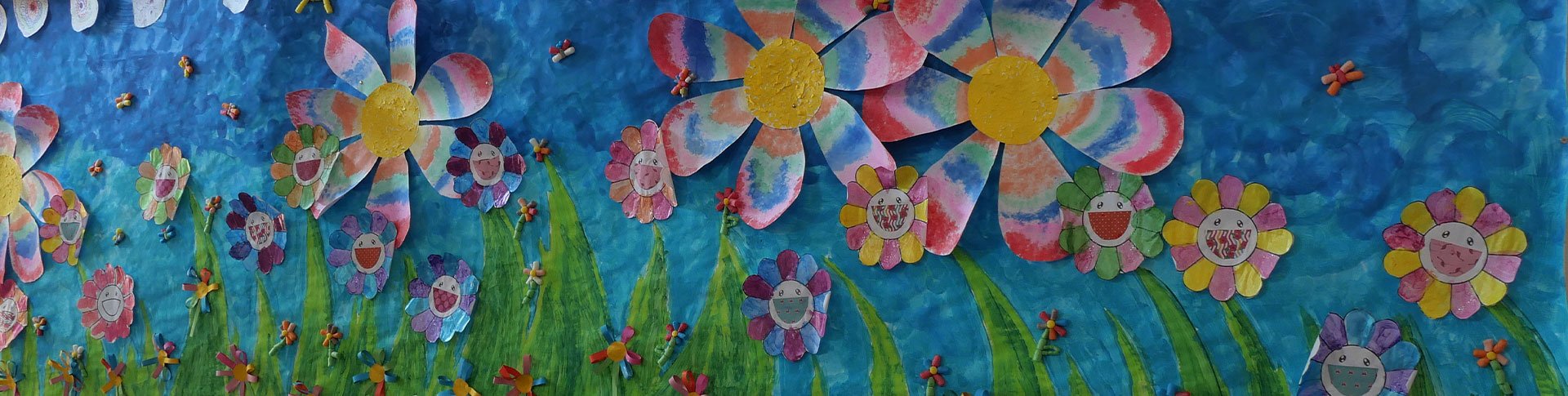 Toutes les classes ont confectionné des fleurs différentes, elles ont été ensuite rassemblées sur une seule et même fresque. Un joli travail collectif pour souhaiter la bienvenue au printemps !