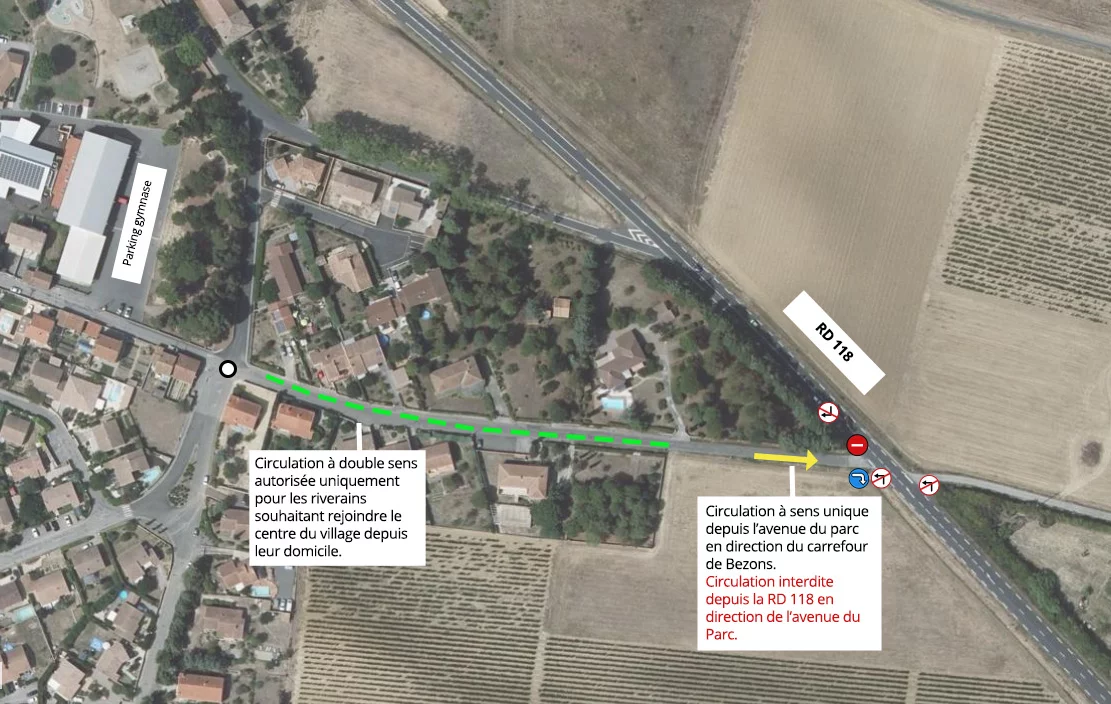 La sécurité a été améliorée notamment avec la création d’un trottoir, la création d’un giratoire au croisement avec le chemin de la Piboule et la mise en place d’un sens interdit depuis la RD 118.
