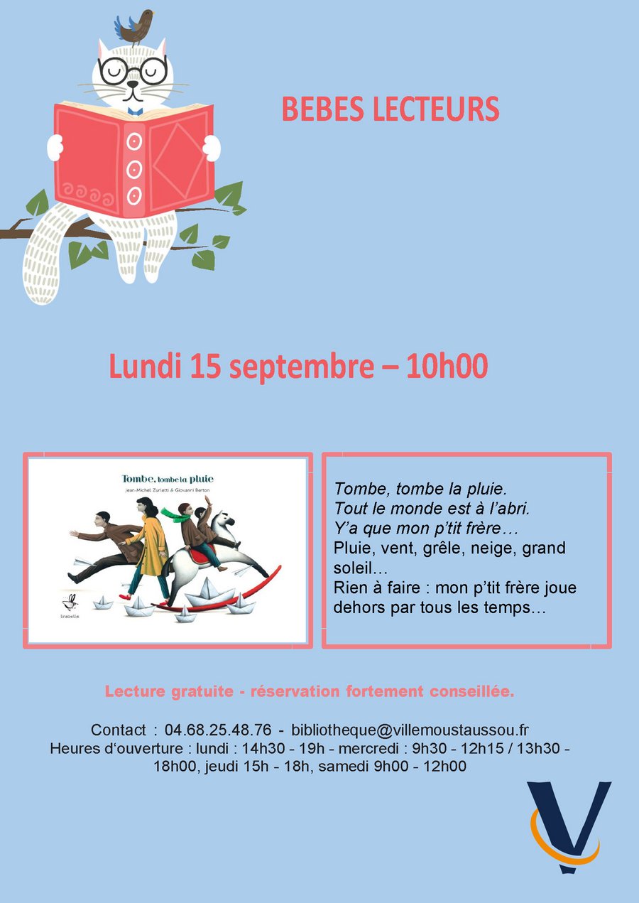 Le nombre de places étant limité, la réservation est vivement conseillée par téléphone au 04.68.25.48.76 ou par mail à bibliothequevillemoustaussoufr