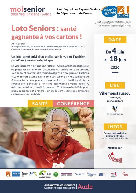 La commune de Villemoustaussou, en partenariat avec la Mutualité Française et l’appui des Espaces Seniors du Département de l’Aude, propose aux plus de 60 ans, des ateliers de prévention santé gratuits.