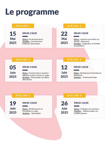 Pensez à prendre une tenue confortable, 1 tapis, 1 serviette ainsi qu’une bouteille d’eau.