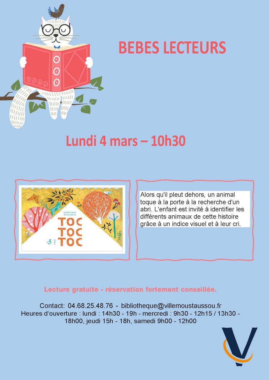 Le nombre de places étant limité, la réservation est vivement conseillée. Pour cela, contactez la bibliothèque au 04.68.25.48.76 ou par mail à bibliothequevillemoustaussoufr