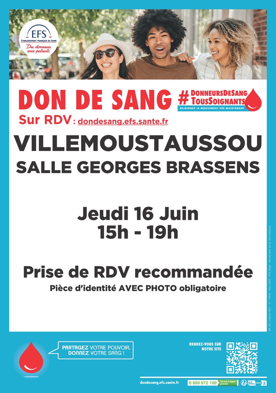La prochaine collecte de sang aura lieu jeudi 16 juin, à Villemoustaussou.