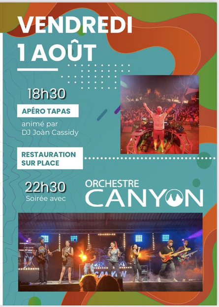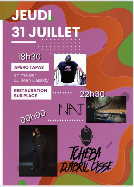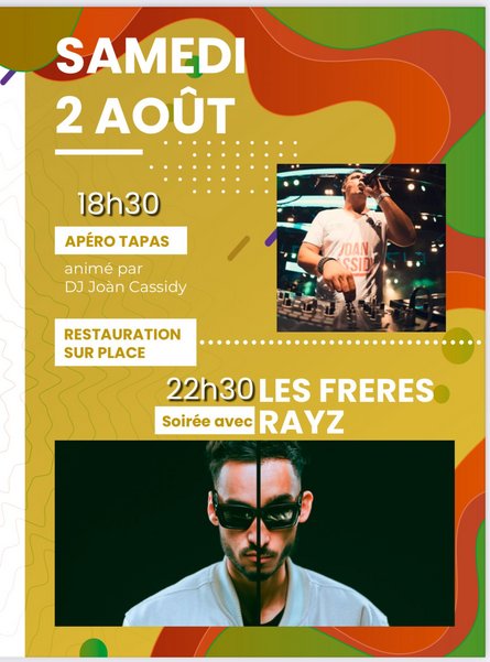 Et aussi concours de pétanque vendredi & samedi à partir de 15h, manèges pour les plus jeunes, Apéro Tapas tous les soirs animés par le DJ JOAN CASSIDY.