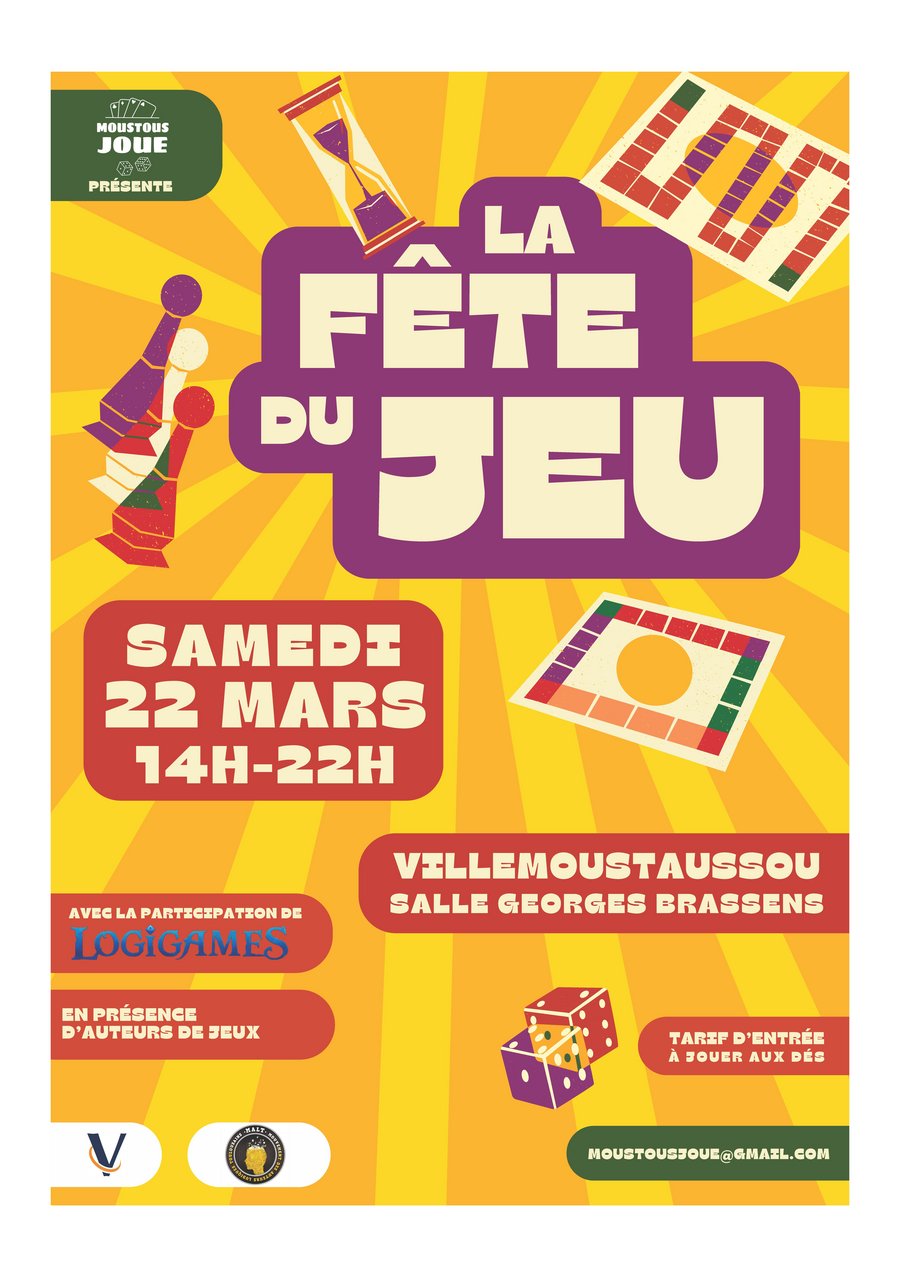 L’association MOUSTOUSJOUE organise sa 4ème Fête du Jeu, le samedi 22 mars, de 14h à 22h, salle Georges BRASSENS.