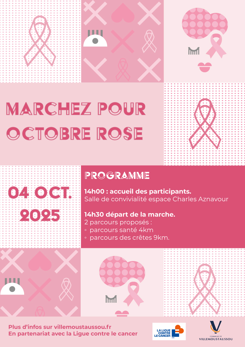 A l’occasion d’octobre rose, la municipalité s’associe une nouvelle fois à Ligue contre le cancer pour organiser une marche solidaire, le SAMEDI 04 OCTOBRE.