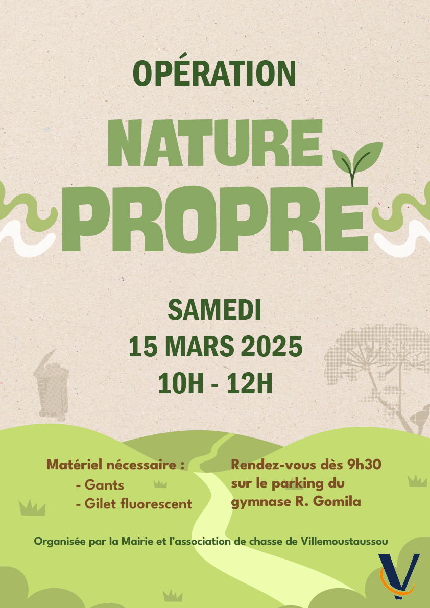 La municipalité et l’ACCA (Association Communale de Chasse Agréée) se mobilisent pour l’environnement et organisent une « opération nature propre », le samedi 15 mars de 10h à 12h, départ du gymnase René GOMILA.