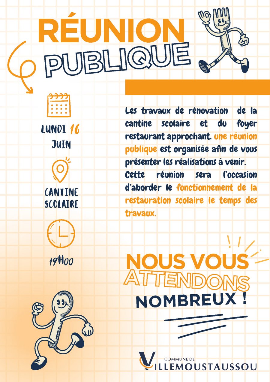 Cette réunion publique s'adresse à l'ensemble des Villemachoises et Villemachois : parents d'élèves, seniors utilisateurs du foyer restaurant et tous les citoyens intéressés par ce projet d'amélioration de nos équipements publics. Elle sera l'occasion de présenter en détail le projet de réhabilitation, d'échanger sur la démarche environnementale retenue et d'aborder les questions pratiques liées au fonctionnement de la restauration scolaire pendant la durée des travaux.