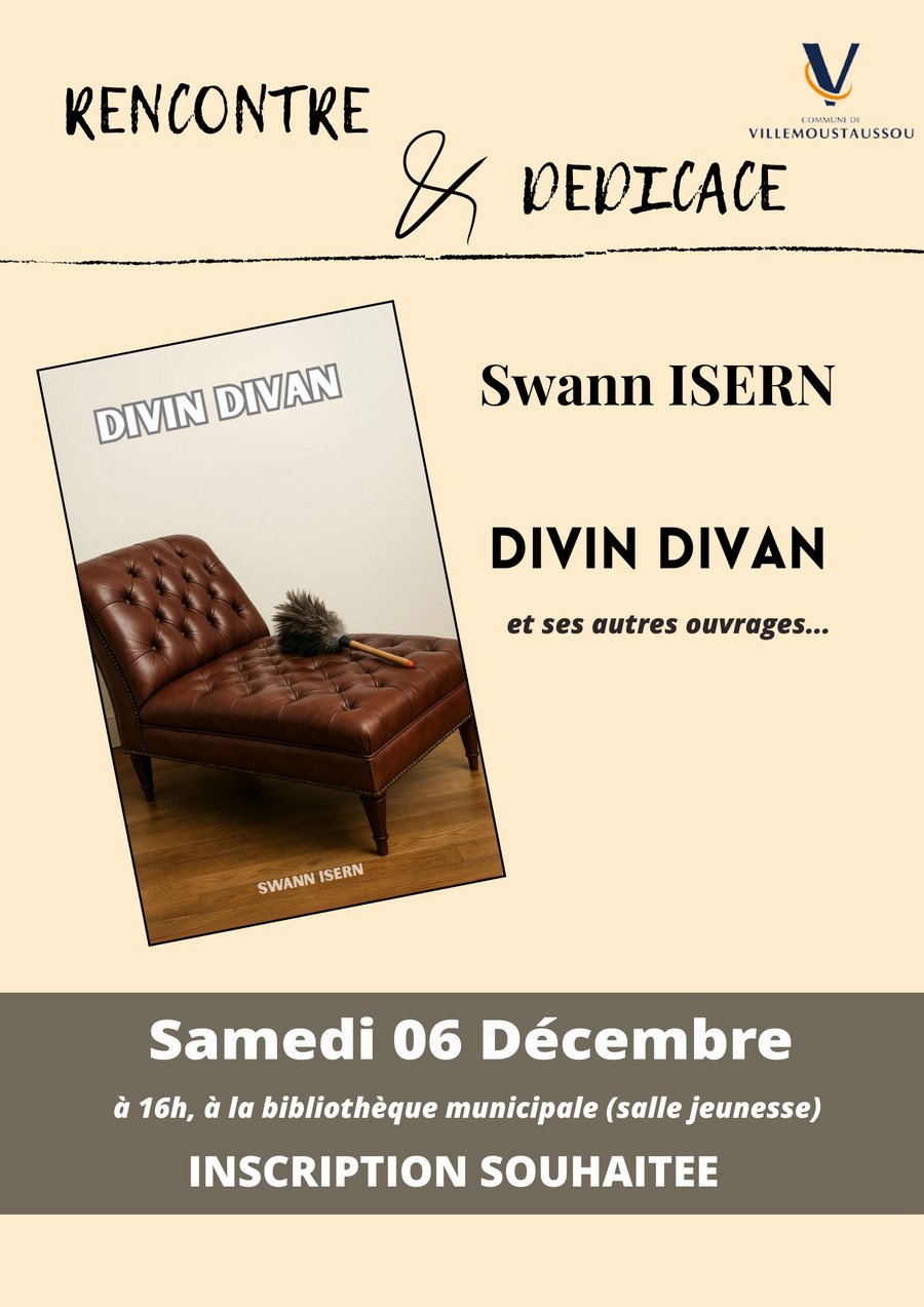 Swann ISERN sera présente à la bibliothèque municipale, le samedi 06 décembre à 16h, pour vous présenter son tout dernier ouvrage « DIVIN DIVAN ».